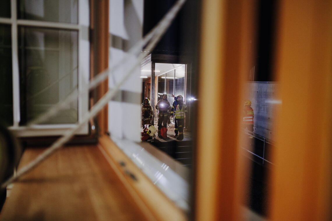 Draußen war es bereits dunkel, was die Übung noch eindrücklicher machte. Die Kinder aus dem ersten Stockwerk brauchten etwas länger, doch am Ende konnten alle erfolgreich „gerettet“ werden. Die Zusammenarbeit zwischen Feuerwehr und Schule funktionierte reibungslos – ein großes Lob an alle Beteiligten!
